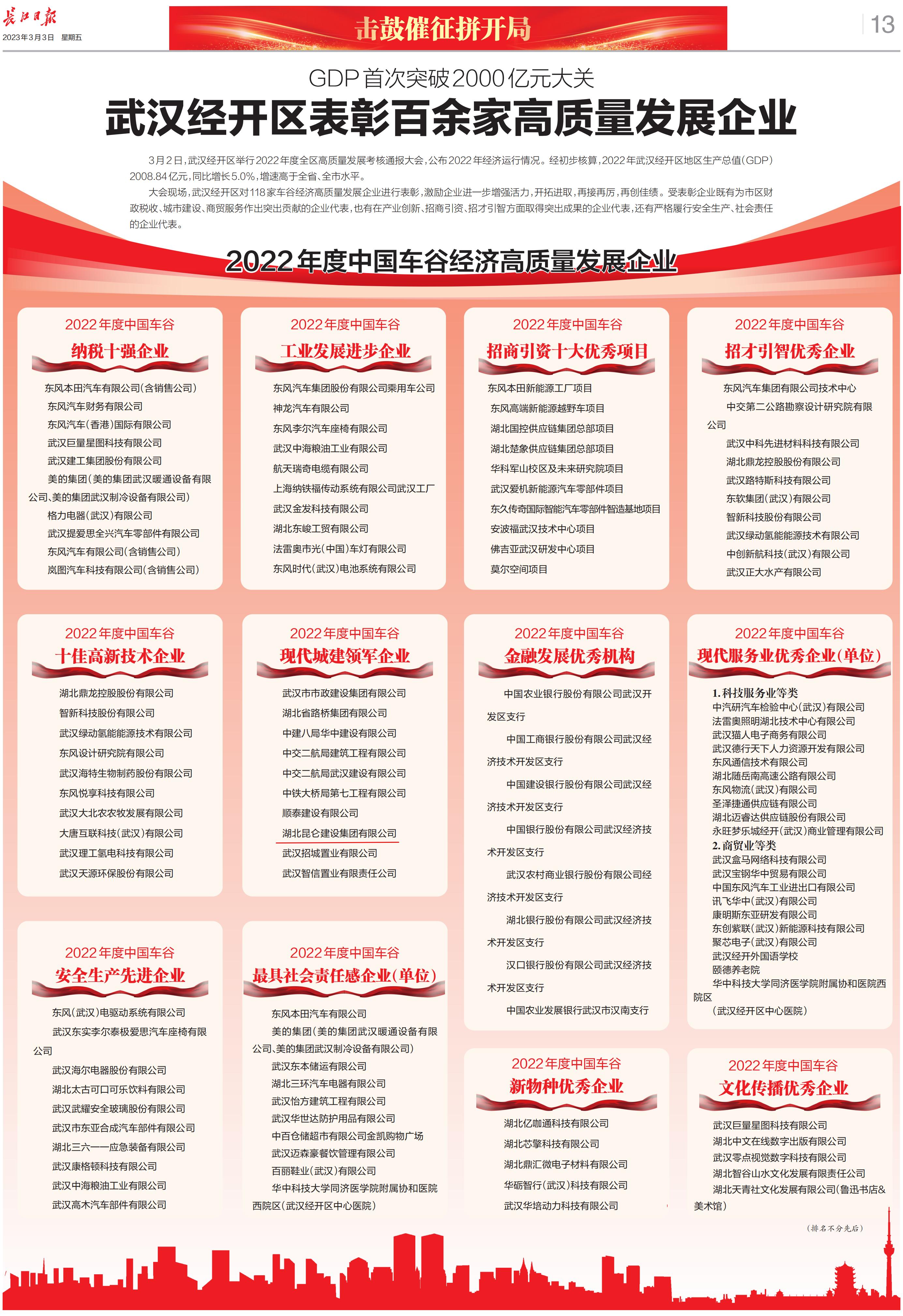 2022年度武漢經開區(qū)車谷高質量企業(yè)